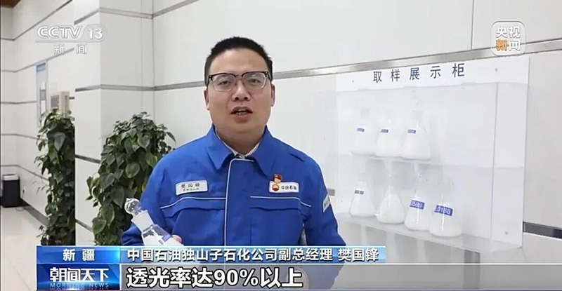 中国石油独山子石化公司副总经理 樊国锋:我们的POE(聚烯烃弹性体)透光率达90%以上,制成的光伏胶膜,可最大限度提升光伏组件发电效率;优异的耐候性、水汽阻隔性能,能有效保护组件内部电路,让光伏板寿命从25年延长至30年以上。